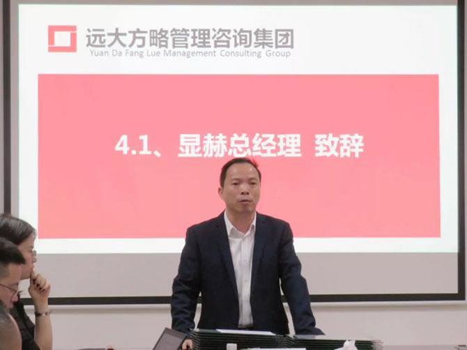 啟動(dòng)會(huì)上顯赫電子科技總經(jīng)理致辭表示:“大海行船, 不進(jìn)則退,為了更好地做好管理基礎(chǔ),搭建好的管理架構(gòu)、打造一支優(yōu)秀的管理團(tuán)隊(duì),提升顯赫電子科技的管理效率,進(jìn)而達(dá)成企業(yè)良好的效益,將企業(yè)做強(qiáng),為此我們經(jīng)過深思熟慮和多方論證,聘請(qǐng)了遠(yuǎn)大方略作為我們的管理顧問團(tuán)隊(duì)。希望團(tuán)隊(duì)的各位與遠(yuǎn)大方略老師一起克服重重困難,解決困擾我們的管理瓶頸,為顯赫科技做強(qiáng)打好基礎(chǔ) ,實(shí)現(xiàn)企業(yè)、員工、客戶的共贏”