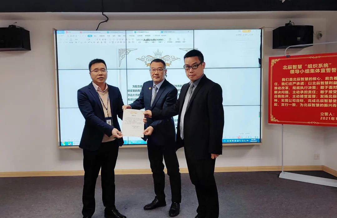 啟動會最后,潘總給咨詢項目“變革領(lǐng)導(dǎo)小組”頒發(fā)了任命書,集體進(jìn)行了宣誓,大家信心滿滿,相信此次改善定能給北辰智慧帶來質(zhì)的改變。