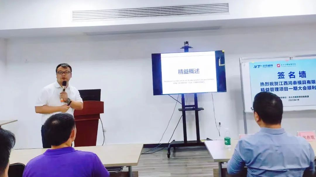 同時(shí),結(jié)合鴻泰模具發(fā)展現(xiàn)狀,老師制定了一套完善的項(xiàng)目改善計(jì)劃,會(huì)議上老師介紹了此次項(xiàng)目的改善內(nèi)容,明確精益管理的組織架構(gòu),強(qiáng)調(diào)領(lǐng)導(dǎo)組和精益管理推進(jìn)辦公室各自的職責(zé),希望大家各司其職,落實(shí)每項(xiàng)工作,持續(xù)改善打造標(biāo)桿。