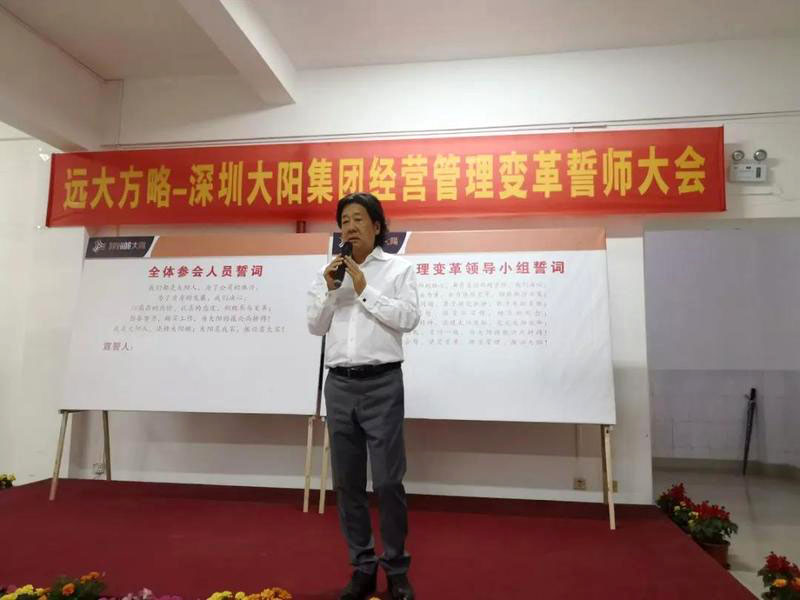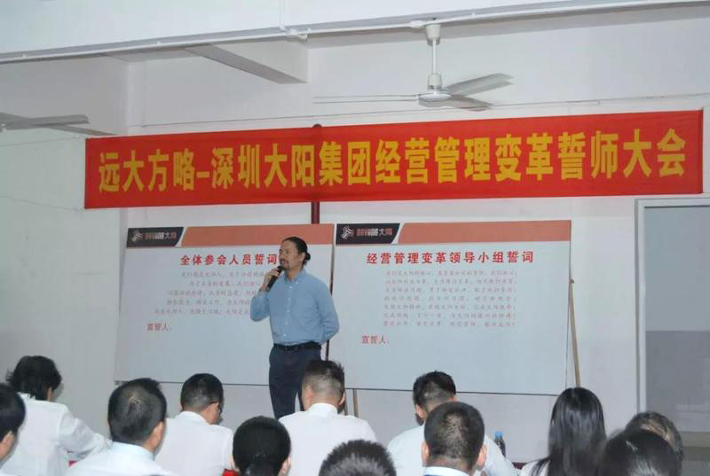 “誓師大會(huì)的召開標(biāo)志著大陽集團(tuán)調(diào)研工作的結(jié)束和大陽集團(tuán)經(jīng)營管理變革工作的開始,企業(yè)管理變革只有開始沒有結(jié)束;企業(yè)管理變革會(huì)有一個(gè)痛苦的過程,不經(jīng)歷風(fēng)雨怎么見彩虹,但痛苦之后一定會(huì)收獲喜悅;變革中我們需要相互精誠合作、統(tǒng)一方向、為完成變革使命全力以赴。”