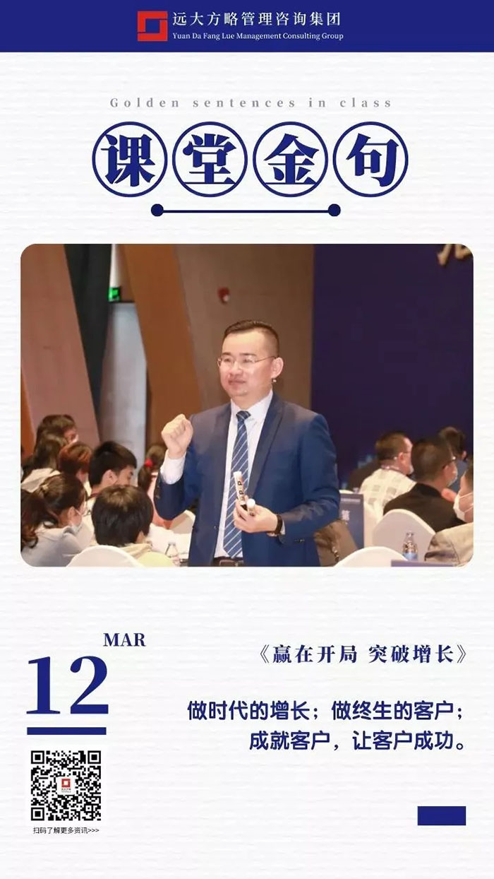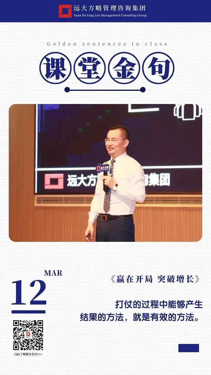 課堂上雷老師講課循序漸進(jìn),通過(guò)問(wèn)題的形式逐步引發(fā)學(xué)員的思考,讓每位學(xué)員都能有所感有所悟,回到企業(yè)之后能夠落到實(shí)處,做到真正的幫企業(yè)解決問(wèn)題,這也正是遠(yuǎn)大方略的定位,成為中國(guó)實(shí)體企業(yè)實(shí)效的持續(xù)增長(zhǎng)方案解決商,遠(yuǎn)大方略也一直秉承初心努力踐行!