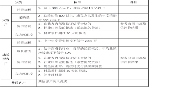 (4)建立YHD公司客戶(hù)分類(lèi)分級(jí)標(biāo)準(zhǔn),具體標(biāo)準(zhǔn)如下: