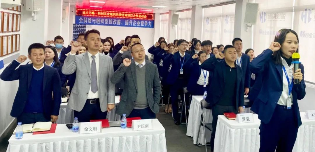 啟動會上,羅總向遠(yuǎn)大方略項目老師頒發(fā)了授權(quán)書,為項目團(tuán)隊頒發(fā)了任命書,宣布項目組成立、項目正式啟動,并一起進(jìn)行了宣誓,進(jìn)一步堅定了公司上下變革的決心。