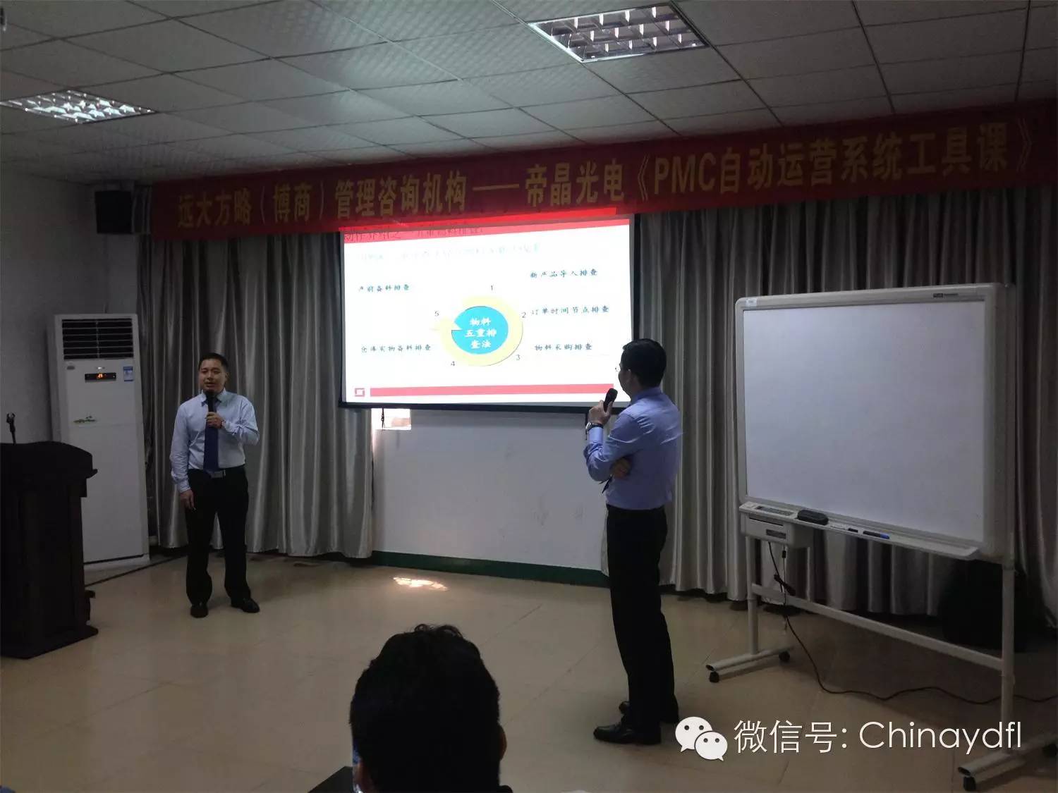 雷志軍老師與劉再強(qiáng)老師在詳細(xì)講解物料五重排查法以及物料齊套管理困難后果