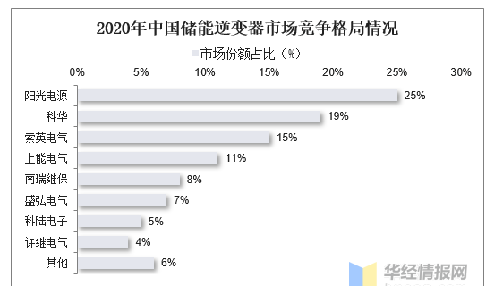 從儲能逆變器市場競爭格局來看,目前我國龍頭企業(yè)是陽光電源,主要從光伏逆變器領(lǐng)域切入,有一定先發(fā)優(yōu)勢,目前在海內(nèi)外市場都排名第一,2020年國內(nèi)儲能逆變器市占率達到了20.4%。