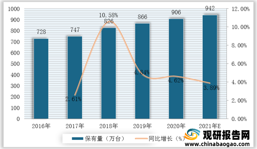 2016-2021年工程機(jī)械主要設(shè)備保有量、增速及預(yù)測(cè)