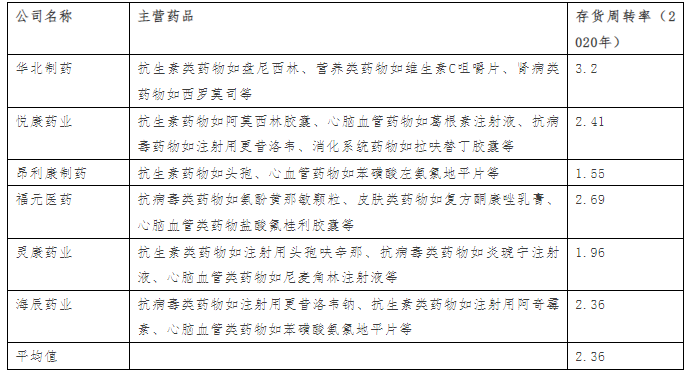 醫(yī)藥制造行業(yè)的存貨普遍較大,經(jīng)對比研究上市公司2020年公開數(shù)據(jù),得出結(jié)論醫(yī)藥制造行業(yè)平均存貨周轉(zhuǎn)率在2-3之間(按產(chǎn)品細(xì)分領(lǐng)域不同可能存在一定差異)。