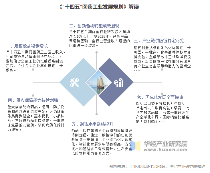 面對國內(nèi)外新形勢發(fā)展,為推動(dòng)我國醫(yī)藥工業(yè)向創(chuàng)新驅(qū)動(dòng)轉(zhuǎn)型,促進(jìn)我國醫(yī)藥工業(yè)高質(zhì)量發(fā)展,依據(jù)《中華人民共和國國民經(jīng)濟(jì)和社會(huì)發(fā)展第十四個(gè)五年規(guī)劃和2035年遠(yuǎn)景目標(biāo)綱要》,2022年1月30日,工業(yè)和信息化部等九部門聯(lián)合編制了《“十四五”醫(yī)藥工業(yè)發(fā)展規(guī)劃》。