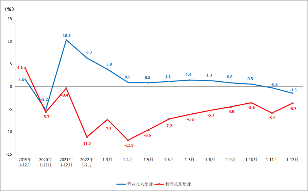 近日,國(guó)家統(tǒng)計(jì)局披露了2022年12月工業(yè)企業(yè)經(jīng)濟(jì)效益狀況。縱觀2022,全年經(jīng)濟(jì)運(yùn)行受到國(guó)際形勢(shì)、國(guó)內(nèi)疫情、高溫干旱等多重超預(yù)期因素反復(fù)沖擊,整體運(yùn)行態(tài)勢(shì)偏弱。
