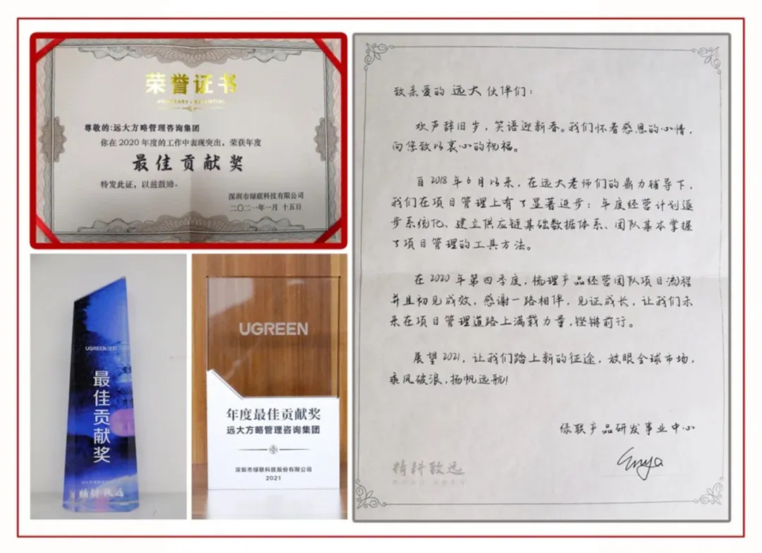 遠大方略項目組進駐綠聯(lián)科技,通過10期改善,組織整體效率提升,建立了產(chǎn)品開發(fā)標準流程和完善的項目管控模式,加快了新品上市周期;培養(yǎng)了多家核心供應(yīng)商,構(gòu)建了高效供應(yīng)鏈體系;同時搭建人才培養(yǎng)體系,為企業(yè)發(fā)展提供強有力的人才支撐,促使年營業(yè)額持續(xù)穩(wěn)定增長。