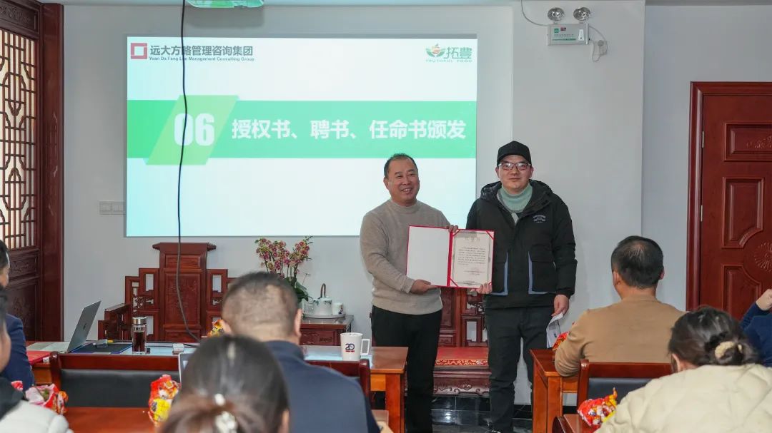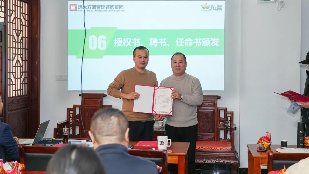 為了進(jìn)一步加強(qiáng)項(xiàng)目組的權(quán)威性和執(zhí)行力,拓豐樸道領(lǐng)導(dǎo)為遠(yuǎn)大方略項(xiàng)目組頒發(fā)了授權(quán)書(shū),授予老師項(xiàng)目管理權(quán),同時(shí),還為拓豐樸道項(xiàng)目組成員頒發(fā)任命書(shū),明確了各成員的職責(zé)與使命,進(jìn)一步強(qiáng)化了項(xiàng)目團(tuán)隊(duì)的執(zhí)行力和領(lǐng)導(dǎo)力,為此次項(xiàng)目改善提供了有力的組織保障。