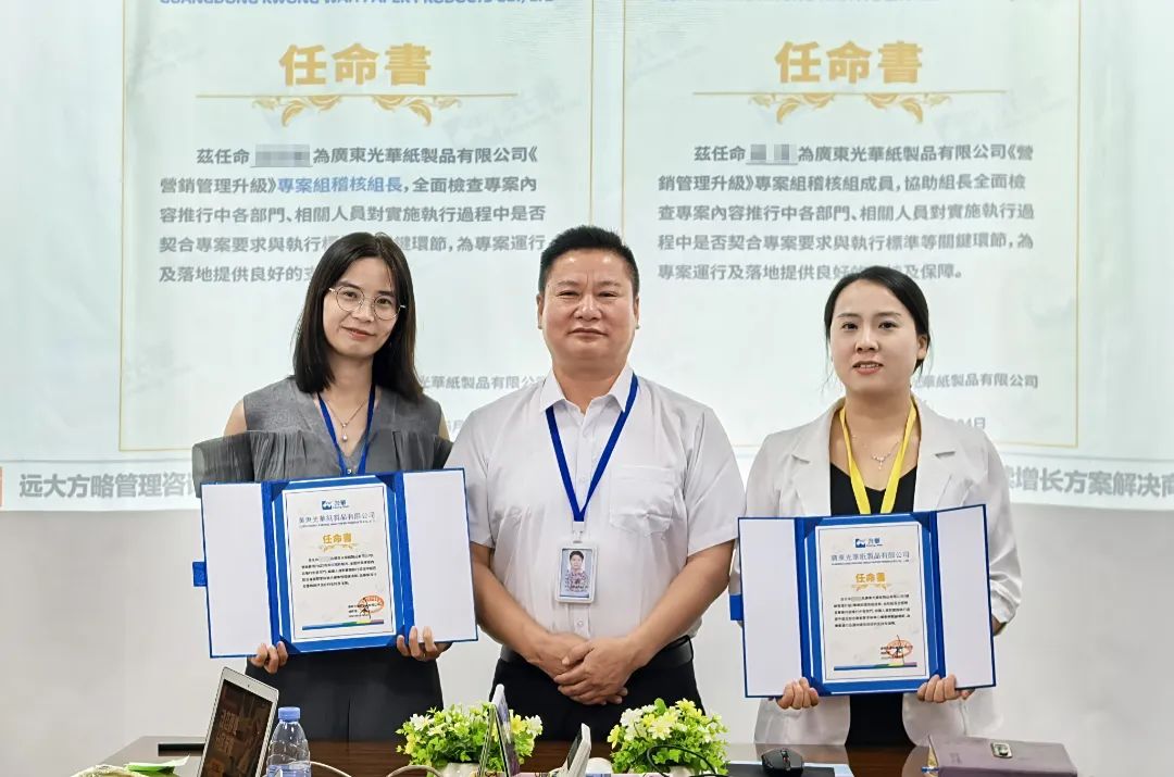 廣東光華紙制品有限公司(以下簡稱“廣東光華”)作為深耕行業(yè)多年的港資企業(yè),始終秉持“與時俱進”的拼搏精神,在半個多世紀的發(fā)展歷程中不斷突破自我。面對當(dāng)下市場競爭的新挑戰(zhàn)與客戶需求的新升級,廣東光華主動求變,攜手遠大方略正式啟動《營銷管理升級》咨詢項目,旨在通過系統(tǒng)性的營銷體系優(yōu)化、專業(yè)能力的深度賦能,為企業(yè)注入發(fā)展新動能,助力企業(yè)突破瓶頸,實現(xiàn)可持續(xù)增長