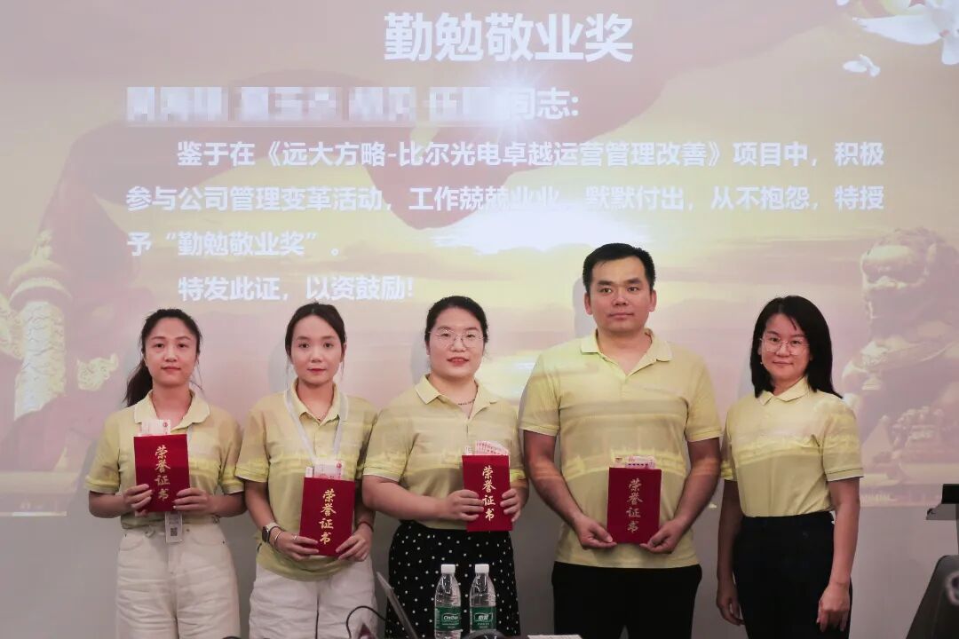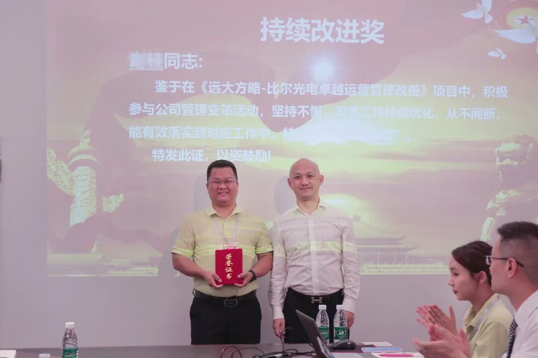 在一期改善過程中,對(duì)于表現(xiàn)優(yōu)秀的個(gè)人,也給予了表彰,比爾光電領(lǐng)導(dǎo)為表現(xiàn)突出的同事頒發(fā)了榮譽(yù)證書。
