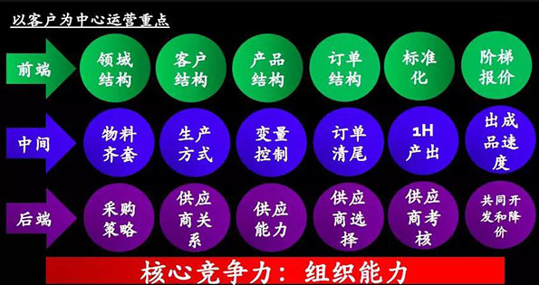 3、運(yùn)營重點(diǎn):企業(yè)的商業(yè)模式不一樣,對企業(yè)內(nèi)部運(yùn)營的要求和重點(diǎn)也不一樣,例如某中小型企業(yè)是以客戶為中心的,該企業(yè)的運(yùn)營重點(diǎn)總結(jié)如下圖所示(企業(yè)階段、規(guī)模、行業(yè)等存在差異,運(yùn)營重點(diǎn)也會(huì)有差異):