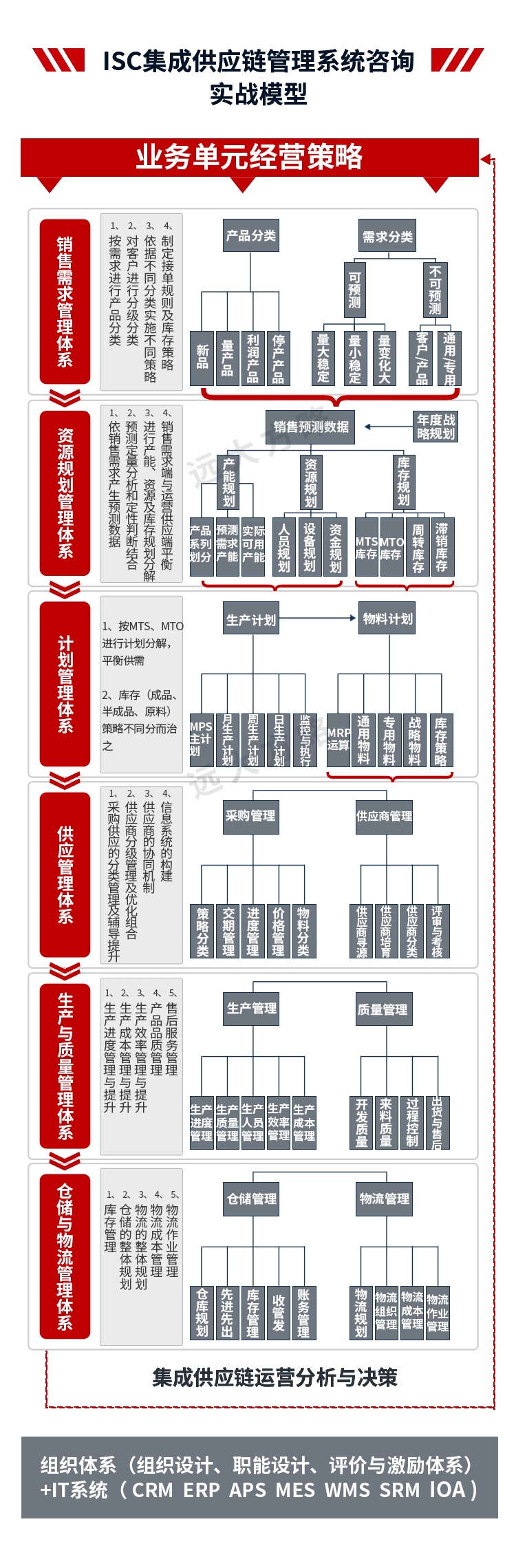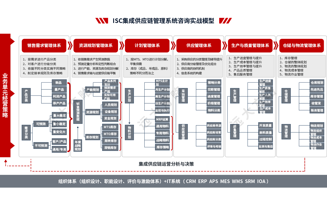 2、輔導(dǎo)模塊:推行ISC集成供應(yīng)鏈管理,主要圍繞產(chǎn)品運(yùn)營管理、接單規(guī)則和庫存管理、銷售預(yù)測(cè)管理、S&OP管理、公司計(jì)劃模式優(yōu)化、物料管理體系等